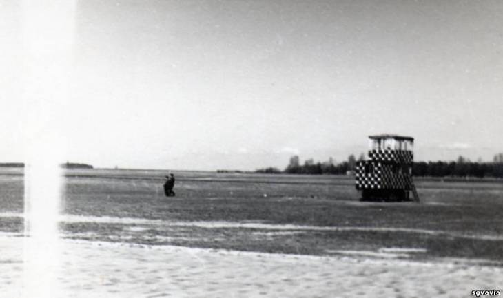 | 189 Гв. АПИБ, аэродром Олава, стартовый командный пункт (СКП), 1958-1959 г. Помню, что имелся и мобильный СКП, на автомобиле ЗИЛ(ЗИС)-151, с радиостанцией и энергоустановкой. Это металлический фургон, с прозрачным (стекло или плекс?) колпаком, в виде усеченнной пирамиды, возвышавшегося над крышей фургона. Под колпаком располагалось, обрудованное место, для РП. Ниже (на полу фургона)имелись места для др. спецов (штурман, НС, хронометражист). На противоположной стороне ВПП, на каком-то расстоянии (?) находился ЗКП, в подземном сооружении.