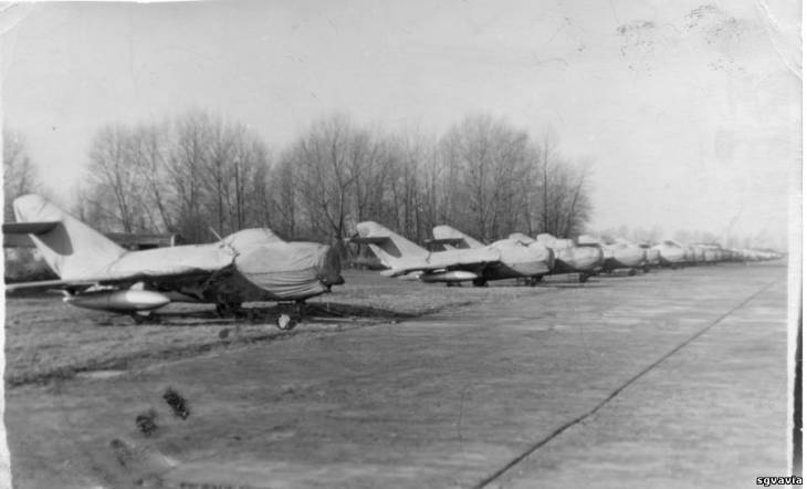 | 189 Гв. АПИБ, аэродром Олава. Стоянка самолетов. Боевые МиГ-15бис.