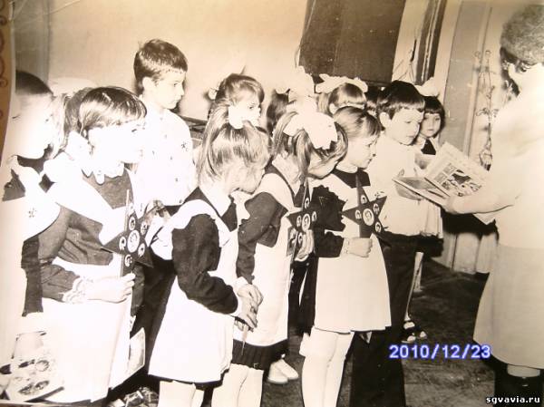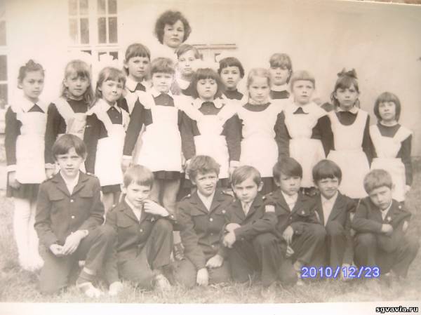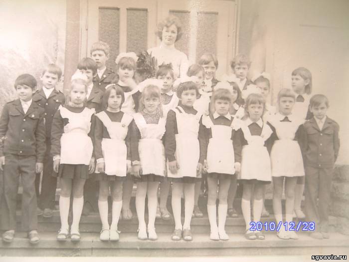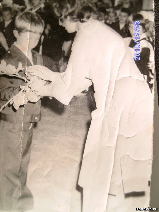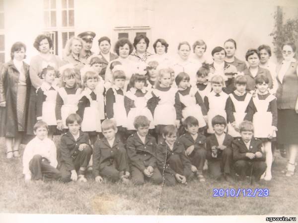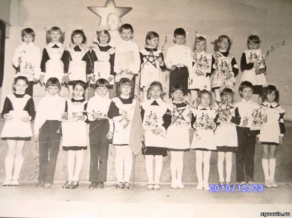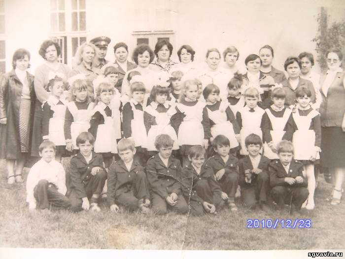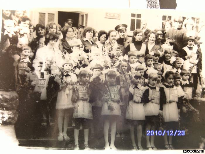 В школу в 1-й класс мы пошли в 80-м голу. На этой фотографии мужчина в форме, в центре, от моей мамы сразу слева, похож на тебя Саша. Это не ты случаем?