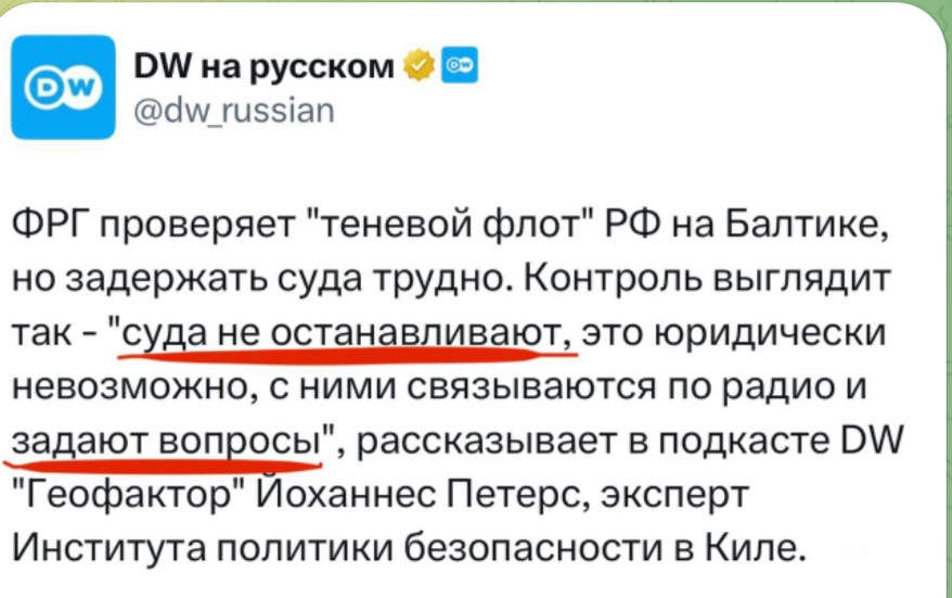 | Саня | Дата: Вторник, 10 Июня 2025, 18:56:21 | Сообщение # 669 |  |     Группа: Админ Сообщений: 65535 Статус: Отсутствует | Россия намерена проверить решимость НАТО, расширив конфронтацию с Западом за пределы Украины. Такое голословное заявление сделал шеф Федеральной разведывательной службы Германии Бруно Каль.