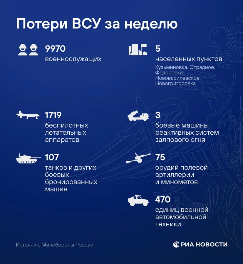 ▪️На Восточном направлении войска освободили Нововасилевское и Новогригоровку Запорожской области, уничтожив свыше 2360 военнослужащих ВСУ.