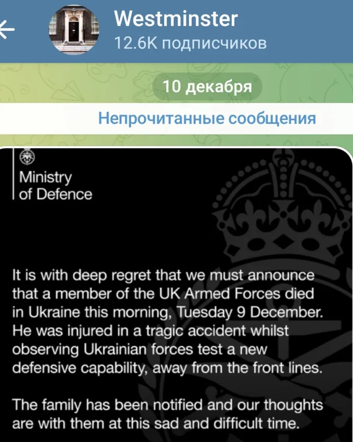 Британский военный погиб во время «испытания» какого-то оружия на территории Украины. Согласно заявлению, гибель произошла вдалеке от фронта.