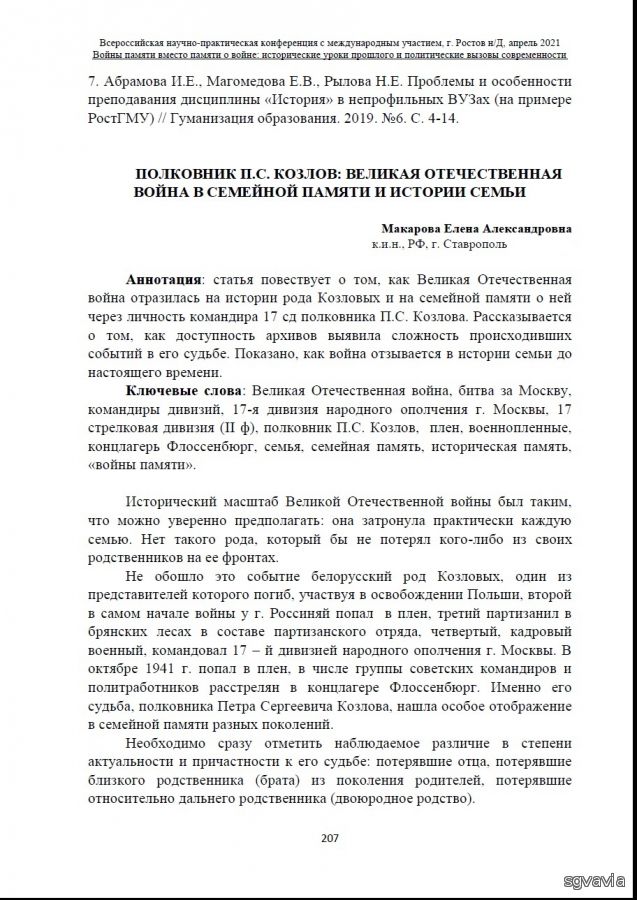 | Цитата MSDNO_17 (  ) не менее интересен и актуален для темы истории как дивизии, так и судьбы ее первого командира доклад, сделанный на прошедшей в минувшем месяце в Московском педагогическом государственном университете Международной научной онлайн-конференции «75-летие Великой Победы: память, уроки, противодействие фальсификациям». http://mpgu.su/anonsyi....kacijamДокладов по теме 17 МСДНО было два.