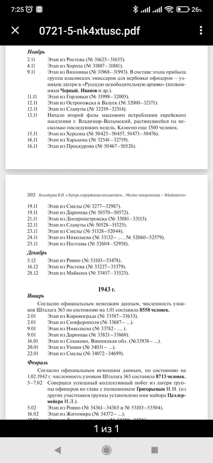 Фамилия Кузьмин Имя Григорий Отчество Кузьмич Дата рождения/Возраст 08.12.1913 Лагерный номер 24974 Дата пленения 23.08.1941 Место пленения Великие Луки Лагерь шталаг I B Судьба Погиб в плену Воинское звание солдат (рядовой) Дата смерти 23.11.1941 Место захоронения Летцен Фамилия на латинице Kusmin Название источника информации ЦАМО Номер фонда источника информации 58 Номер описи источника информации 977520 Номер дела источника информации 1813 http://www.obd-memorial.ru/html/info.htm?id=300171637&page=1 Николай Викторович 14 ОА ПВО 1974-1976 У России только два союзника - это Армия и Флот