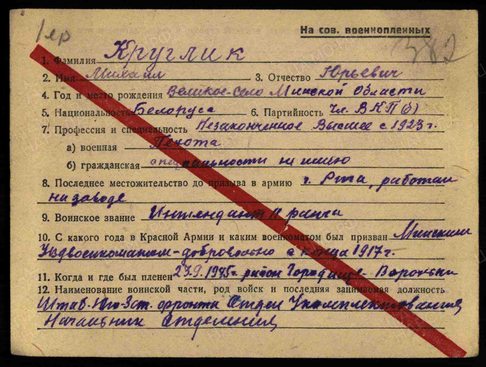 | Цитата Сергей1968 (  ) Интересный пример. Полковник точно в крепости Вюльцбург сидел. Жив и ПК сохранилась. А в ПК о Илаге 13 ни слова. Скутелник тот же список и та же история