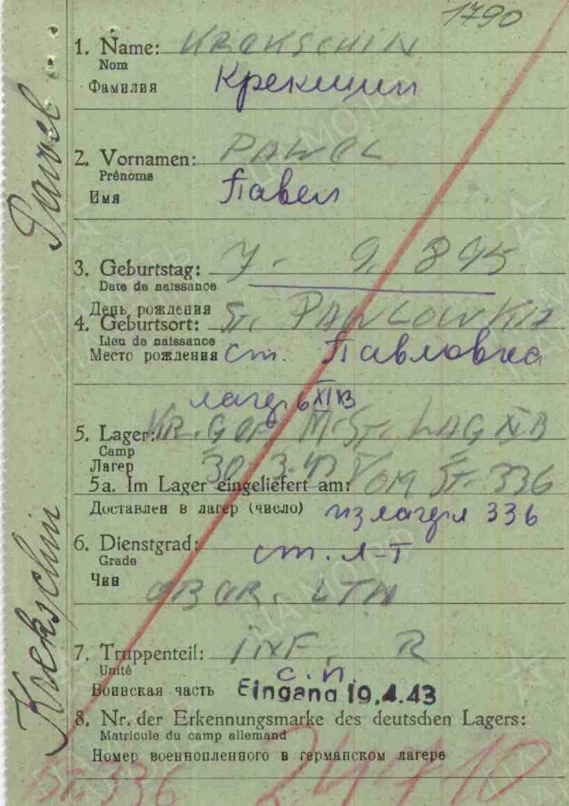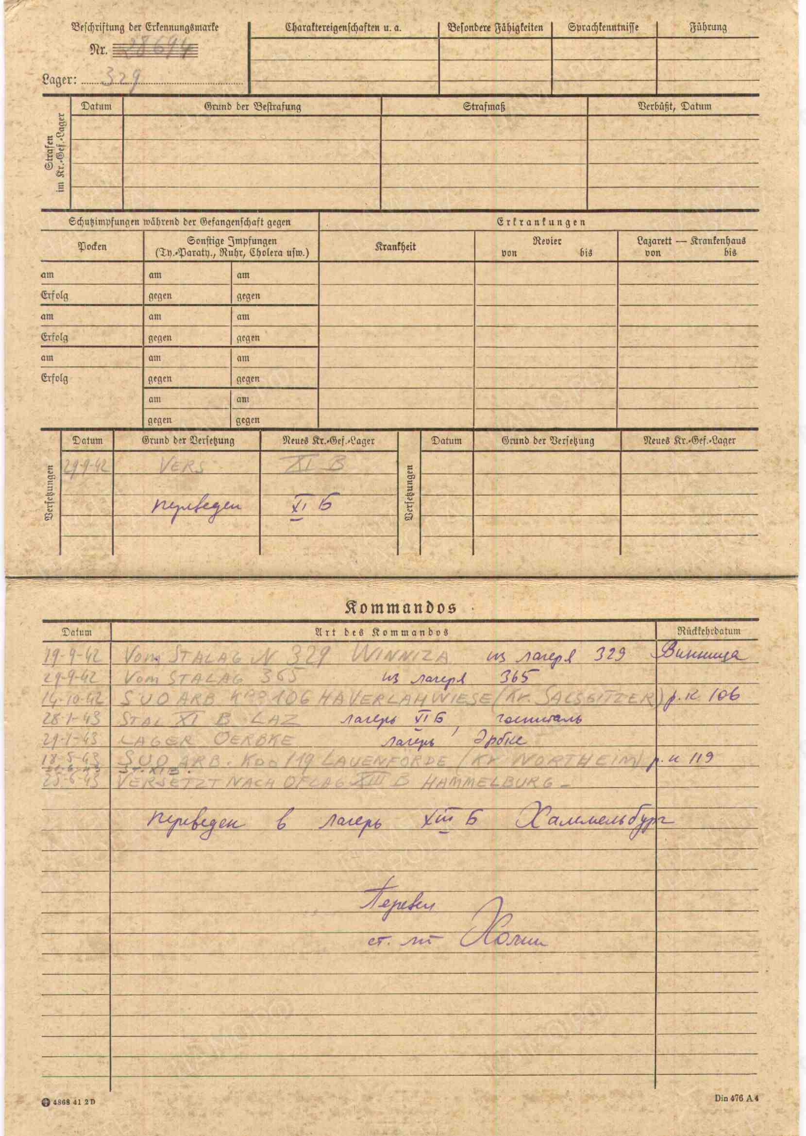 Прибыл в илаг 15.11.1943 из шталага I B Хоэнштайн. До этого прошëл офлаг XI A Владимир-Волынск, офлаг XIII D, шталаг XIII D