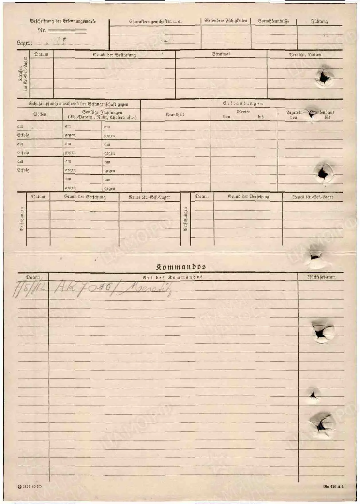 | Arbeitskommando 7010 , 7005 Meretitz b. Klösterle a. d. Eger | |||||||||