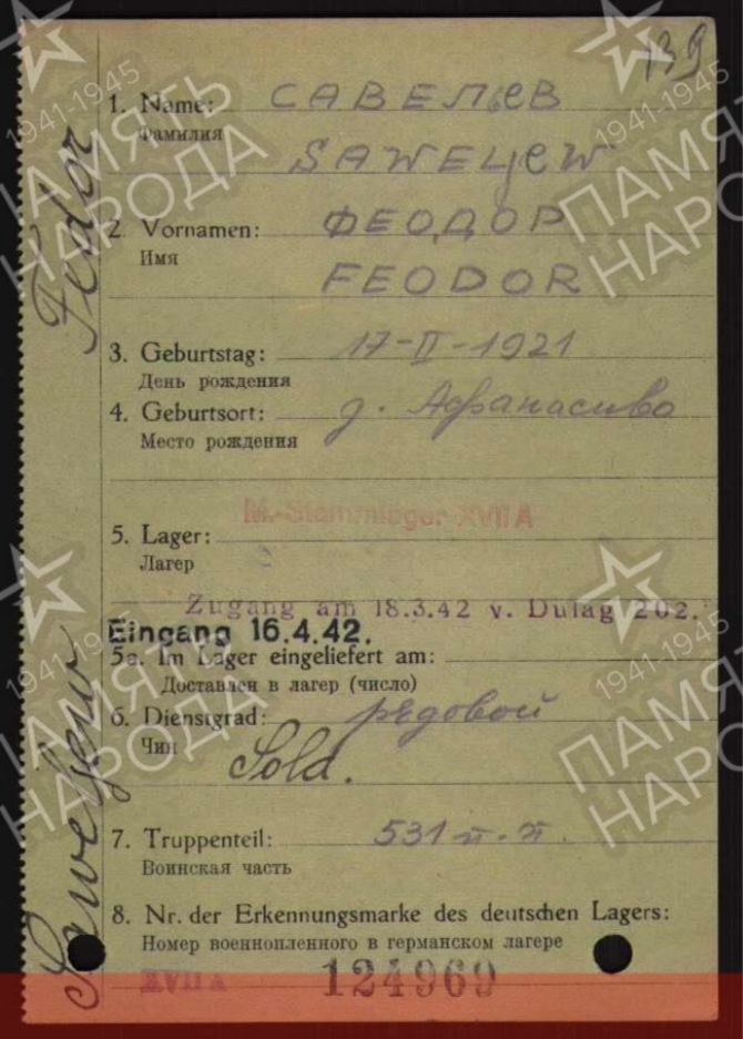 Ну вот это на Зойхера такая же Зелëная карта пленного, как у Савельева:
