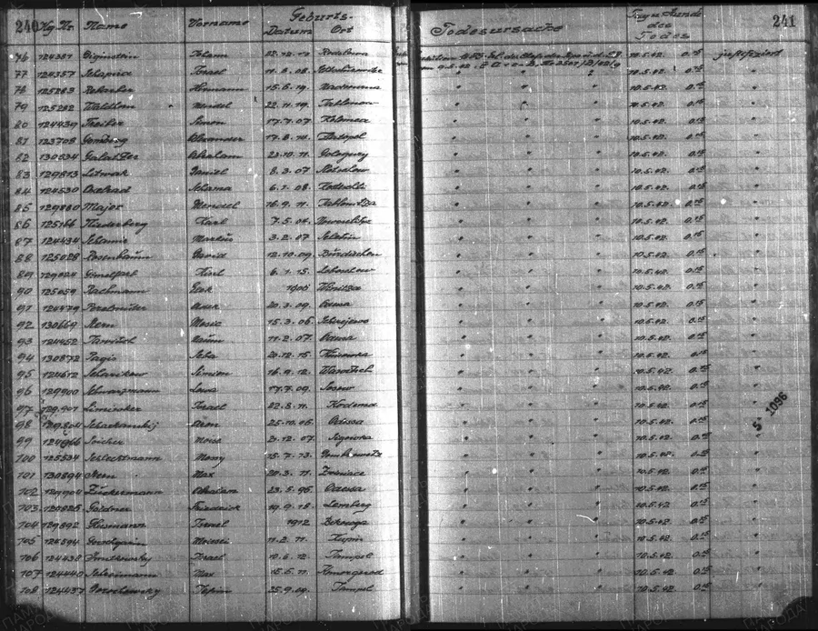 по концлагерю в книгах экзекуций/смертей записи есть.