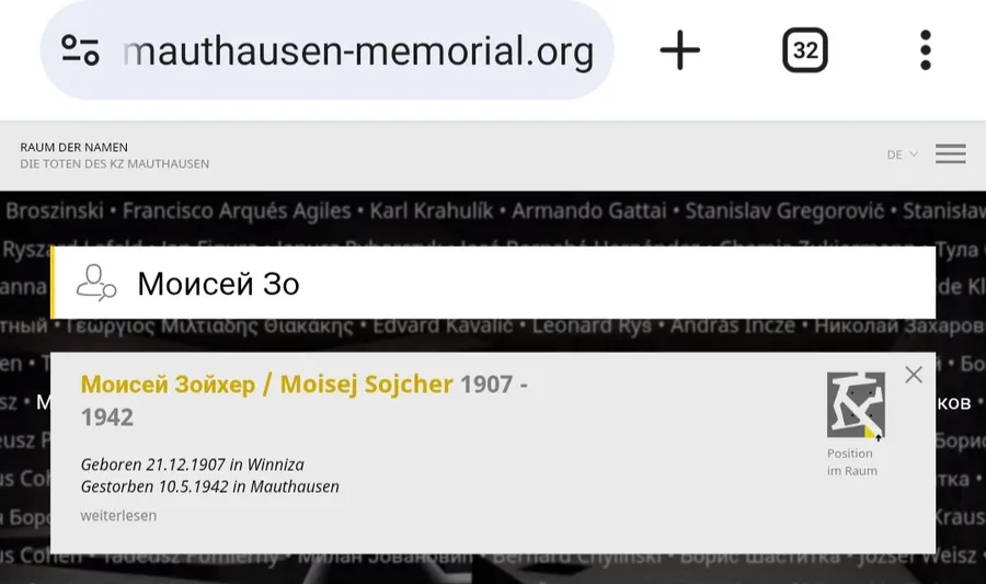 можно вычислять по номерам пробовать и по дате смерти. Их казнить могли в один день всех 10.05.1942 Вот был ближайшим номером и тоже казненный в Маутхаузене скорее всего вместе с Зойхером. Номера по всей видимости Маутхаузена и они прибыли партией.