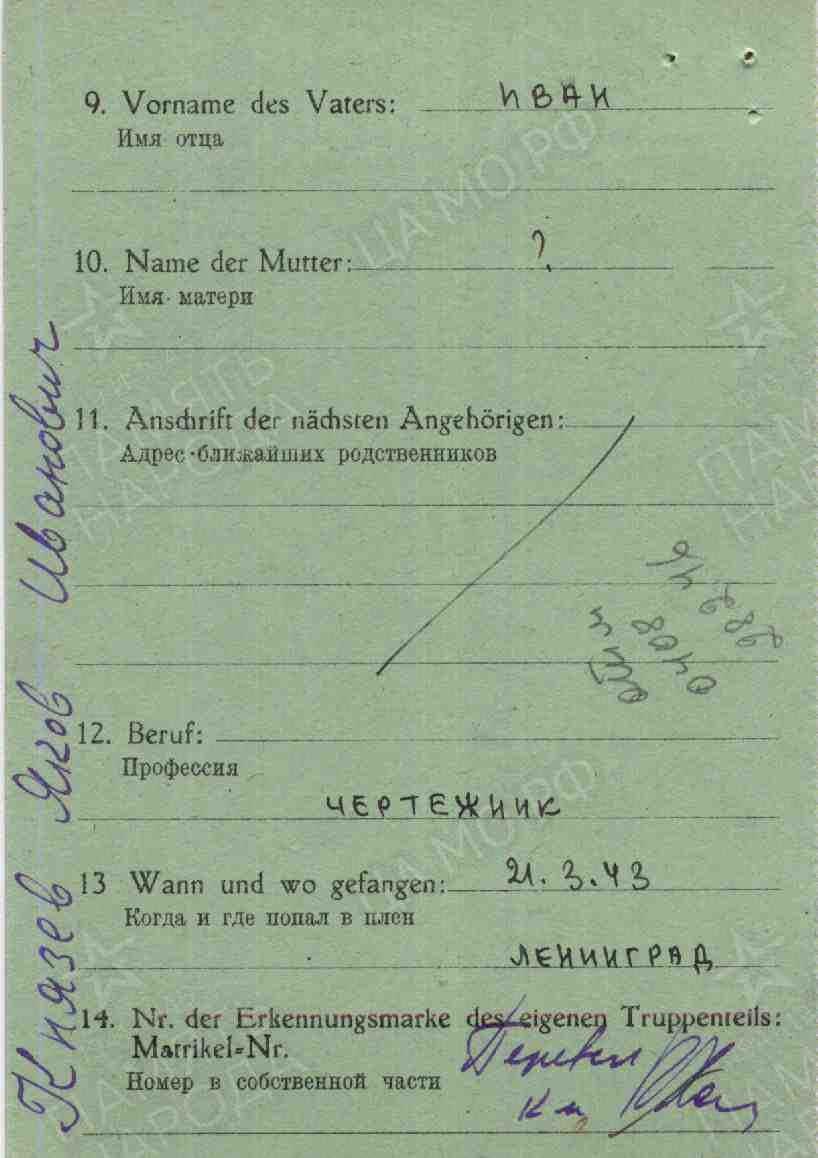 Ольга, спасибо за соболезнование! Редко захожу. Самоотверженно занимаетесь поисками. Ищите ответы на вопросы. К сожалению, база ЦАМО недостаточна для полноценных исследований. Собирать по крупицам из того, что имеется в архивах, трудно. Надо знать, что и где искать. Например, военный архив. Не все знают, что по концлагерям Штуттгоф и Маутхаузен, в архиве много документов. Там же, засекреченные фильтрационные дела москвичей. Когда искала документы на погибшего брата отца, узнала от сотрудников партийного архива на Б. Дмитровке, что в Подольске находятся документы на кандидатов в члены ВКПб, вступивших в период войны . Прочитав дело брата отца, узнала из трех рекомендаций о том, что имел тяжелое ранение в живот и многое другое. Нашла в партийном архиве дело ( 200 cтр) бывшего члена Коминтерна- австрийца. Был с папой в штрафной роте в Маутхаузене. Работал в Москве. Знал русский и рассказал папе о казни группы Фомина. В книге это есть. В этом же архиве, нашла дело о расследовании казни, в сентябре 44 года в Маутхаузене , группы из 145 советских пленных. В книге это тоже есть. Упоминание папы в этом деле тоже было. По фамилии Цуркан нашла дело. А в деле письмо немецкого антифашиста, узника Маутхаузена, в советские партийные органы, о том, что к казни многих из 145, имел отношение оборотень - немецкий коммунист. Внедрили и и сдал многих. Указано, в каком архиве письмо, где фамилия оборотня. Можно и догадаться, кто это, если посмотреть в какой тюрьме многие находились перед Маутхаузеном и кто из немецких коммуниста был там в это время. Не было времени найти письмо. Уехала к маме. Найду. Это очень интересно. Через столько лет узнать правду. На Кузнецком мосту , в отделении Красного креста по поиску пропавших, хранятся оригиналы карт по Маутхаузену - по две на каждого. В одной карте, на обратной стороне, написано где работали. На товарищей папы нашла: а на папу не было карт. Одна есть в АльРозоне, а где вторая неизвестно. Может в Израиле - в архиве ЯдВашаме. Там много карт. Американцы раздавали карты по странам. С русским фамилиями- русским, с еврейскими в Израиль и так далее. Узнала из карт товарищей отца, что место работы был записан не карьер, и конечно не штрафная рота, а другое. Манипулировали. Поэтому важно найти вторую карту папы, чтобы посмотреть, что там написано о месте работы. в МО РФ , в отделе у метро Динамо , занимающимся военнопленными, не знали о картах на Кузнецком мосту. Были удивлены, когда рассказала. Много карт и по другим концлагерям в Красном Кресте. Например, Бухенвальд. Копии в АльРозоне.. Давно переданы из Москвы. Был такой журналист Дьяков. Военнопленным был. Написал мемуары. Так вот этот Дьяков отпечатал четыре экземпляра воспоминаний бывших пленных Маутхаузена. Еще живы были в 60— е годы. Проминенты лагеря много книг издали, где навыдумывали много чего и о себе тоже. Так группа Дьякова боролась за правду. Видела эту книгу, Принесли, чтобы я прочитала. Но, что то не то сказала при встрече и передумали давать. Прислали только восемь страниц , где упоминается папа. В семье Дьякова хранится один экземпляр. Нашла в обращении к Полевому: через газету, его адрес московский. Сейчас не могу найти. Затерялось все. Ну и конечно генерал Музыченко. Его оборотни , из разных лагерей, очень боялись. Он за правду боролся реально. В протоколах Комиттета Ветеранов войны 