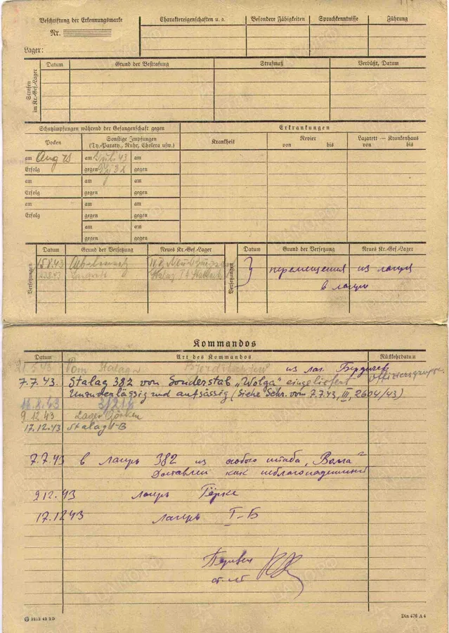 Затем следует неясный недолгий заезд в Зондерштаб "Волга", откуда пленный переведен 7.07.1943 в шталаг 382 Борисов как неблагонадежный.