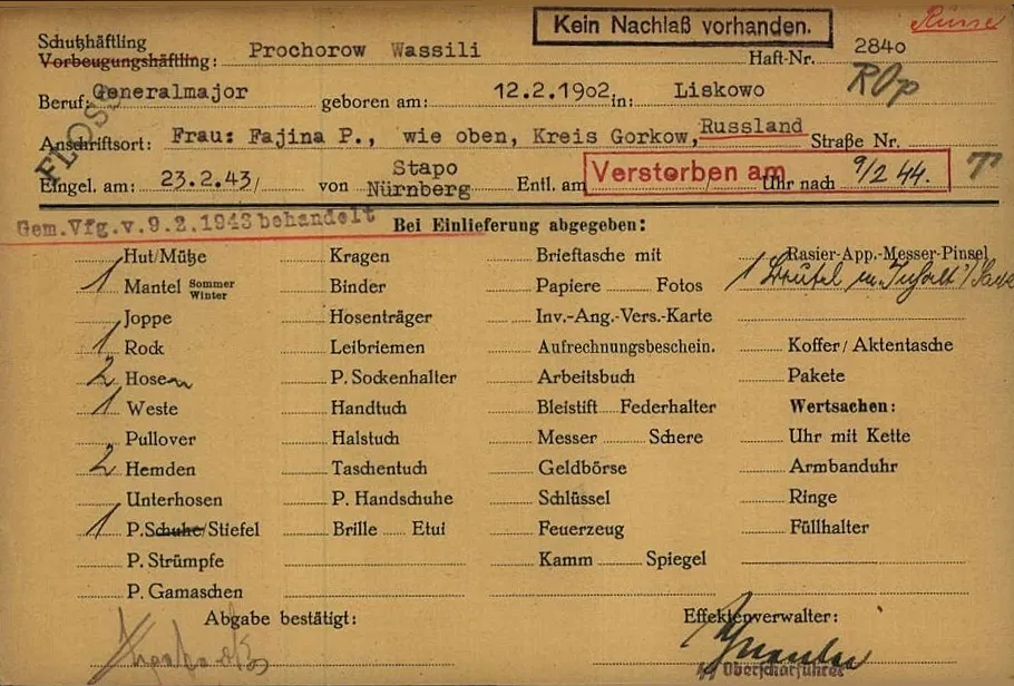 В карте узника - дата смерти Прохорова 9.02.1944