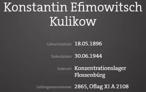 Умер в ревире шталага XIII B Вайден, с диагнозом "сердечная недостаточность"