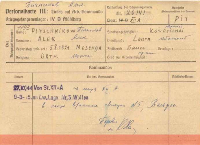 Цитата AgniWater71 (  ) 13.07.1944 поместив его в шталаг XII A Лимбург и присвоив екм 26140. Если версия, что екм Белого из Лимбурга, - верная, то в ОБД доступны ПК-3 некоторых близких Белому екм (хронология не противоречит); офицеры, проходят шталаг IV B Мюльберг: