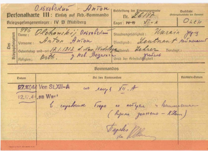В общем, Ольховский - это экслег, которого за некую провинность вернули в плен в шталаге XII A Лимбург, в июле 1944 г.