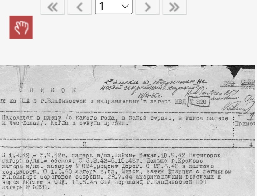 Док, есть ещë интересный обходной вариант (как я люблю :)) - полистать внимательно документ по репатриированным во Владивосток из США... Контингент там своеобразный https://www.sgvavia.ru/forum/149-10745-1 Возможно,этот документ в ближайшее время и гляну. Внезапно вот такой поворот. Собственно, давно хочется, а щас назрело по многим темам. Да и работа чисто механическая. Это если ОБД не будет глючить с изображениями.