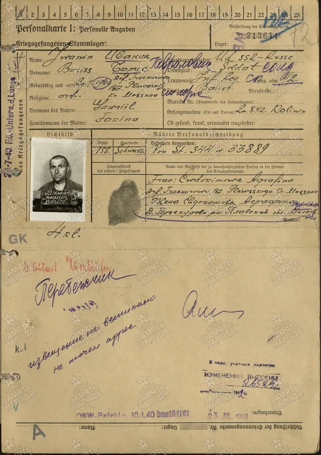 Есть даже немецкое фото этого перебежчика. https://obd-memorial.ru/html/info.htm?id=91808270&p=39 С уважением, Геннадий Буду благодарен за информацию о побегах советских военнопленных Suche alles über Fluchtversuche von russischen Kriegsgefangenen.
