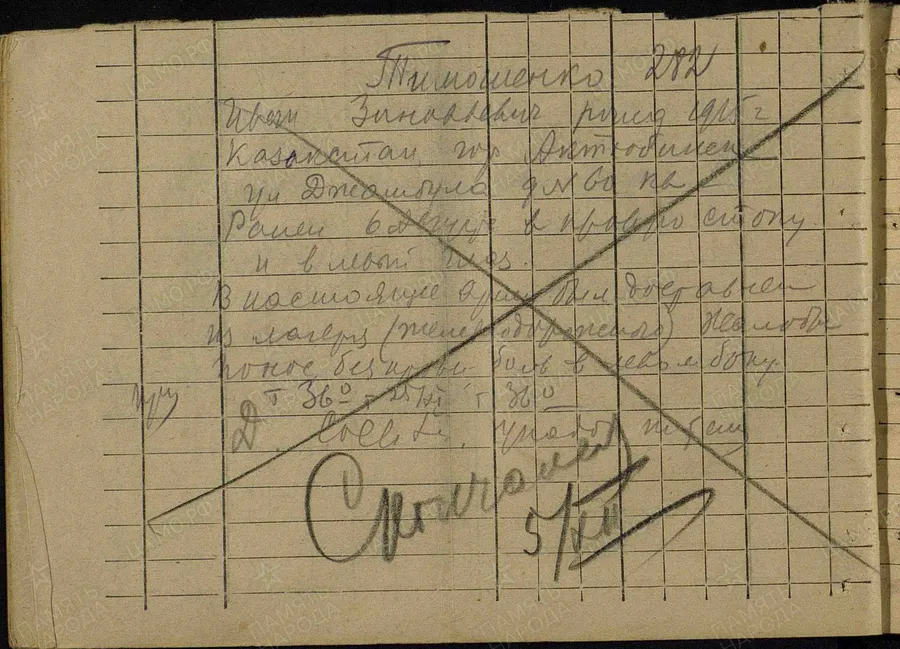 Фамилия Тимошенко Имя Иван Отчество Зенович Дата рождения/Возраст __.__.1915 Место рождения Казахская ССР, Актюбинская обл., г. Актюбинск Дата и место призыва 02.08.1941 Актюбинский ГВК, Казахская ССР, Актюбинская обл., г. Актюбинск Воинское звание рядовой Причина выбытия пропал без вести Дата выбытия __.09.1942 Название источника донесения ЦАМО Номер фонда источника информации 58 Номер описи источника информации 977520 Номер дела источника информации 107 https://obd-memorial.ru/html/info.htm?id=60428394
