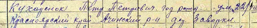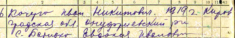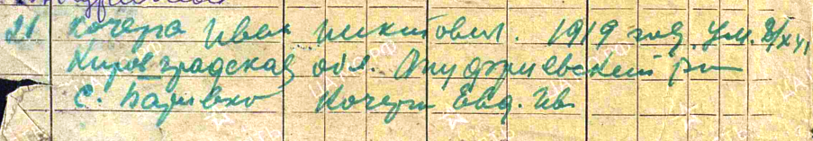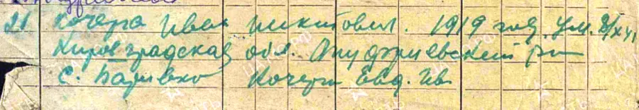 Фамилия Кочера (Кочерга) Имя Иван Отчество Никитович Дата рождения/Возраст __.__.1919