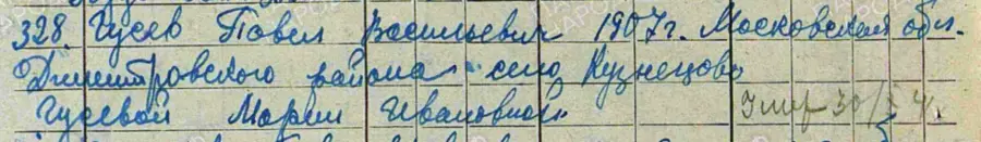 Фамилия Белоусов Имя Михаил Отчество Петрович Дата рождения/Возраст __.__.1902