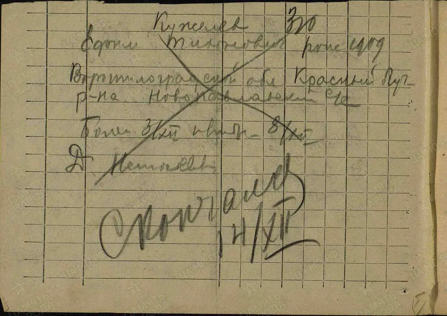 В трëх КП - без вести https://obd-memorial.ru/html....6,25,21 Ольга, Новокузнецк Молчат гробницы, мумии и кости, - Лишь слову жизнь дана: Из древней тьмы, на мировом погосте Звучат лишь письмена (И. Бунин)