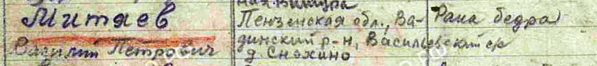 Фамилия Митяев Имя Василий Отчество Петрович Дата рождения/Возраст __.__.1906 Дата и место призыва 27.08.1941 Вадинский РВК, Пензенская обл., Вадинский р-н Воинское звание красноармеец Причина выбытия пропал без вести Дата выбытия __.03.1942 Название источника донесения ЦАМО Номер фонда источника информации 58 Номер описи источника информации 977520 Номер дела источника информации 143 https://obd-memorial.ru/html/info.htm?id=60614060