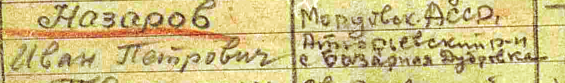 Фамилия Назаров Имя Иван Отчество Петрович Дата рождения/Возраст __.__.1920 Место рождения Мордовская АССР, Атюрьевский р-н, с. Базарная Дубровка Последнее место службы 593 птап Воинское звание лейтенант Причина выбытия пропал без вести Дата выбытия До 12.12.1941 Место выбытия Московская обл., Серпуховский р-н, д. Н.-Вязовня, около Название источника донесения ЦАМО Номер фонда источника информации 33 Номер описи источника информации 11458 Номер дела источника информации 12 https://obd-memorial.ru/html/info.htm?id=2944117