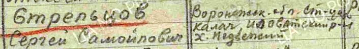 Фамилия Стрельцов Имя Сергей Отчество Самойлович Дата рождения/Возраст __.__.1913 Место рождения Воронежская обл., Меловатский р-н, Россыпянский с/с, с. Медвежье Дата и место призыва __.__.1941 Меловатский РВК, Воронежская обл., Меловатский р-н Последнее место службы зф Воинское звание красноармеец Причина выбытия пропал без вести Дата выбытия __.12.1941 Название источника донесения ЦАМО Номер фонда источника информации 58 Номер описи источника информации 18004 Номер дела источника информации 456 https://obd-memorial.ru/html/info.htm?id=57645551