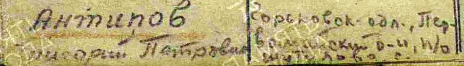 Фамилия Антипов Имя Григорий Отчество Петрович Дата рождения/Возраст __.__.1920 Место рождения Горьковская обл., Первомайский р-н, с. Пандас Дата и место призыва __.__.1939 Последнее место службы 844 ап Воинское звание военветфельдшер Причина выбытия пропал без вести Дата выбытия __.02.1942 Название источника донесения ЦАМО Номер фонда источника информации 33 Номер описи источника информации 594262 Номер дела источника информации 71 https://obd-memorial.ru/html/info.htm?id=75864696