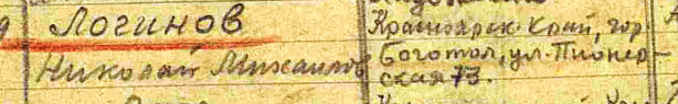 Фамилия Логинов Имя Николай Отчество Михайлович Дата рождения/Возраст __.__.1914 Место рождения Красноярский край, Тюхтетский р-н, д. Никольск Дата и место призыва 31.07.1941 Боготольский РВК, Красноярский край, Боготольский р-н Последнее место службы в/ч 2199 Воинское звание красноармеец Причина выбытия пропал без вести Дата выбытия __.10.1941 Название источника донесения ЦАМО Номер фонда источника информации 58 Номер описи источника информации 977520 Номер дела источника информации 602 https://obd-memorial.ru/html/info.htm?id=63864456