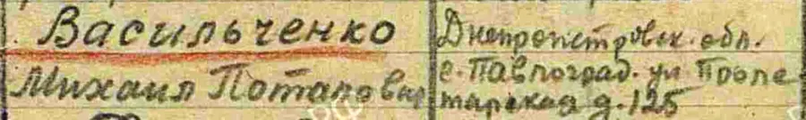 Фамилия Дьячок Имя Яков Отчество Иванович