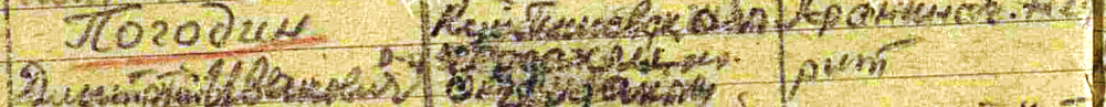Фамилия Погодин Имя Дмитрий Отчество Иванович Дата пленения Не позднее 08.12.1941 Лагерь лагерь Рославль Судьба погиб в плену Дата смерти 11.04.1942 Первичное место захоронения Смоленская обл., Рославль Название источника донесения РГВА Номер фонда источника информации 1509 Номер описи источника информации 1 Номер дела источника информации 6 https://obd-memorial.ru/html/info.htm?id=84308482