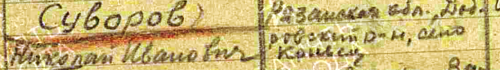 Фамилия Суворов Имя Николай Отчество Иванович Дата рождения/Возраст __.__.1920 Дата пленения Не позднее 15.11.1941 Лагерь лагерь Рославль Судьба погиб в плену Дата смерти 01.01.1942 Первичное место захоронения Смоленская обл., Рославль Название источника донесения РГВА Номер фонда источника информации 1509 Номер описи источника информации 1 Номер дела источника информации 6 https://obd-memorial.ru/html/info.htm?id=84308476