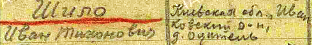 Фамилия Шило Имя Иван Отчество Тихонович Дата рождения/Возраст __.__.1922 Место рождения Украинская ССР, Киевская обл., Иванковский р-н, с. Оцытель Дата и место призыва __.__.1941 Иванковский РВК, Украинская ССР, Киевская обл., Иванковский р-н Воинское звание рядовой Причина выбытия пропал без вести Дата выбытия __.05.1944 Название источника донесения ЦАМО Номер фонда источника информации 58 Номер описи источника информации 18004 Номер дела источника информации 380 https://obd-memorial.ru/html/info.htm?id=57552667