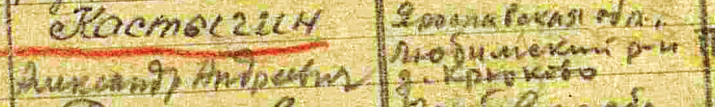 Фамилия Кастыгин Имя Александр Отчество Андреевич Дата рождения/Возраст __.__.1904 Дата пленения Не позднее 07.12.1941 Лагерь лагерь Рославль Судьба погиб в плену Дата смерти 18.01.1942 Первичное место захоронения Смоленская обл., Рославль Название источника донесения РГВА Номер фонда источника информации 1509 Номер описи источника информации 1 https://obd-memorial.ru/html/info.htm?id=84308478