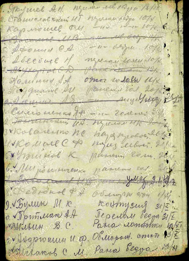 Информация из документов, уточняющих потери ID 58692838 Фамилия Мурунов Имя Александр Отчество Стефанович Дата рождения/Возраст __.__.1906 Место рождения Смоленская обл., Касплянский р-н, Переездовский с/с, д. Горбуны Дата и место призыва __.__.1941 Касплянский РВК, Смоленская обл., Касплянский р-н Причина выбытия пропал без вести Дата выбытия __.12.1943 Название источника донесения ЦАМО https://obd-memorial.ru/html/info.htm?id=58692838 Ольга, Новокузнецк Молчат гробницы, мумии и кости, - Лишь слову жизнь дана: Из древней тьмы, на мировом погосте Звучат лишь письмена (И. Бунин)