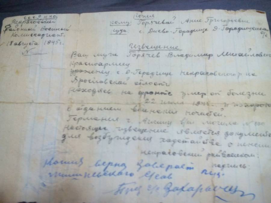 Добрый день! Помогите, пожалуйста, очень хотел бы найти могилу своего прадеда, но не могу найти город, в извещении о смерти указано, что погиб 22.07.1945 года,Германия г. Аишиц , могила № 800. Горячев Владимир Михайлович призван Некрасовским РВК Ярославской Области...