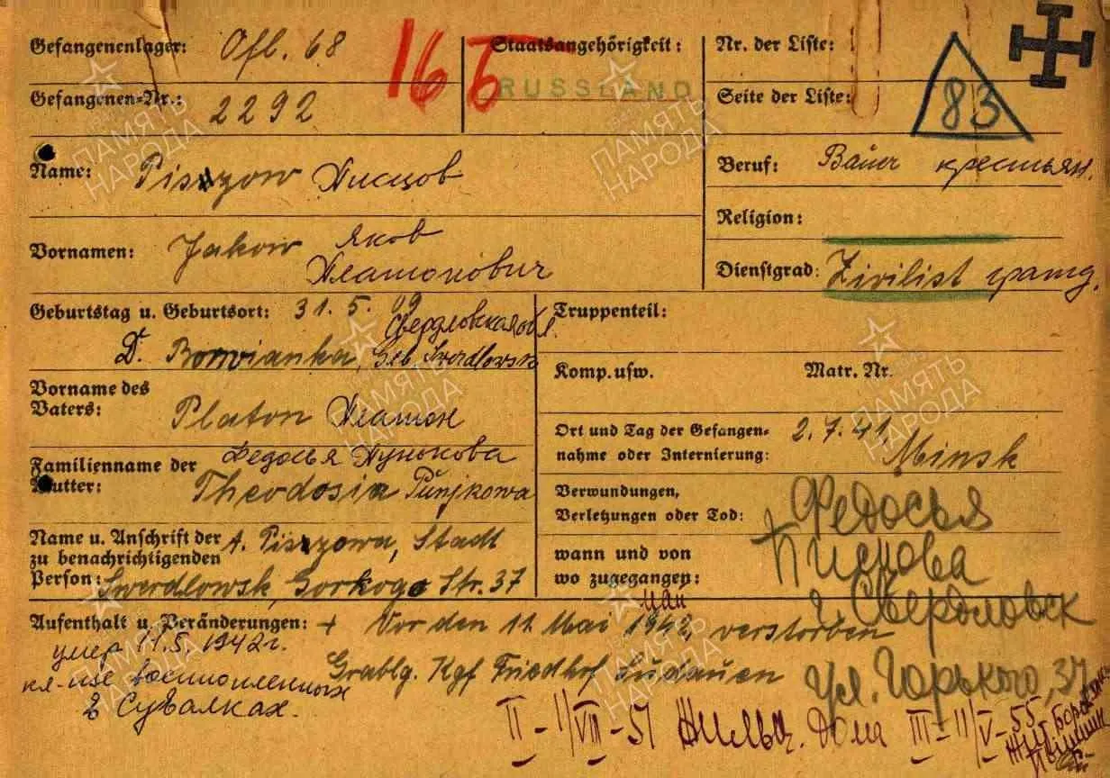 | Авиации СГВ ВОЕННОПЛЕННЫЕ - ШТАЛАГИ, ОФЛАГИ, КОНЦЛАГЕРЯ Информация по плену. Что надо знать.о военнопленных. ПЕРЕВОД КАРТОЧКИ СОВЕТСКОГО ВОЕННОПЛЕННОГО (ПК-1) (Любые вопросы по картам военнопленных в немецком плену) |