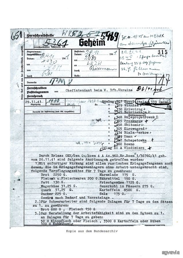 Я вам привёл документ от 16.06.41 согласно которому советских пленных надлежало вплоть до особого распоряжения кормить по разнарядкам вермахта. т.е. так же, как и английских и французских пленных.