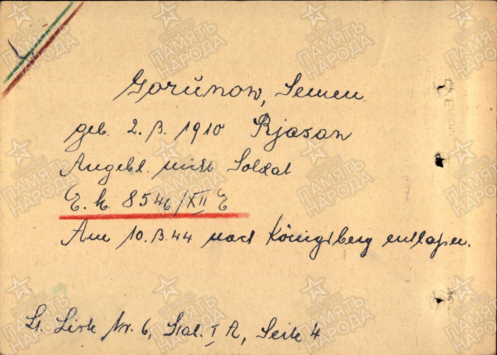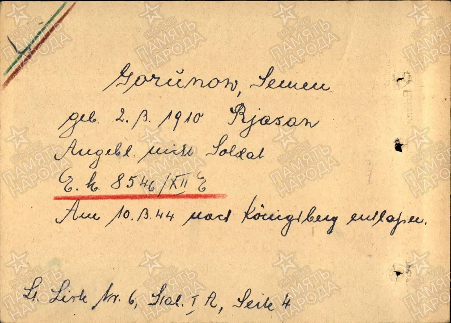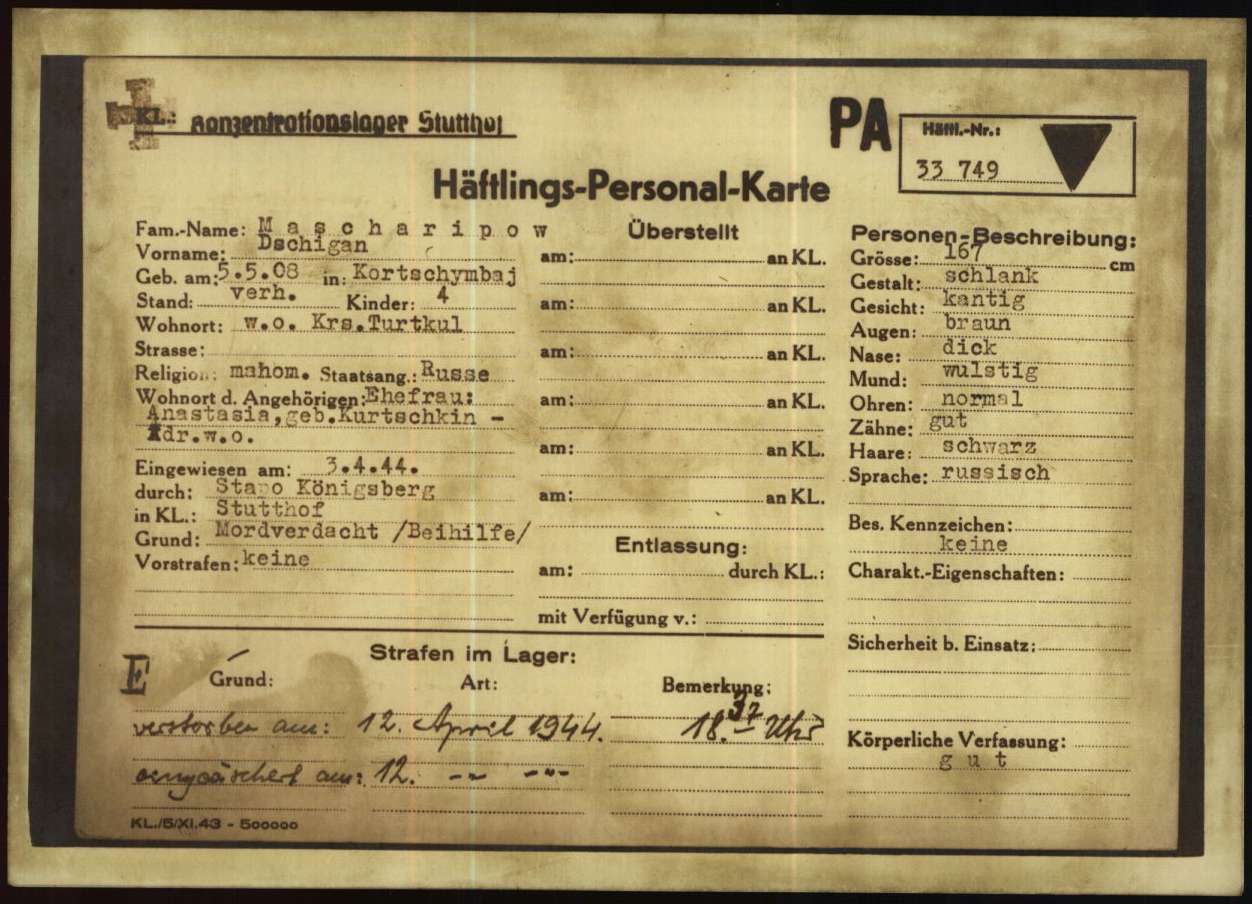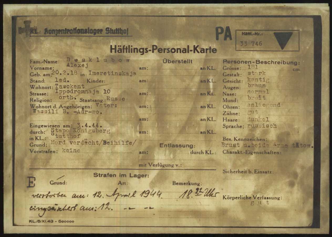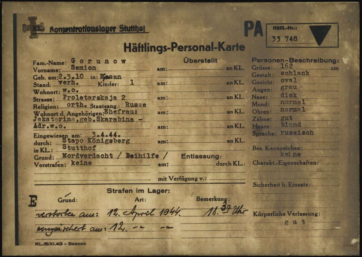 Поступил в концлагерь 3.04.1944 из гестапо Кëнигсберга.