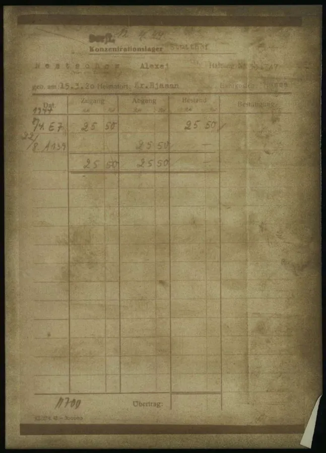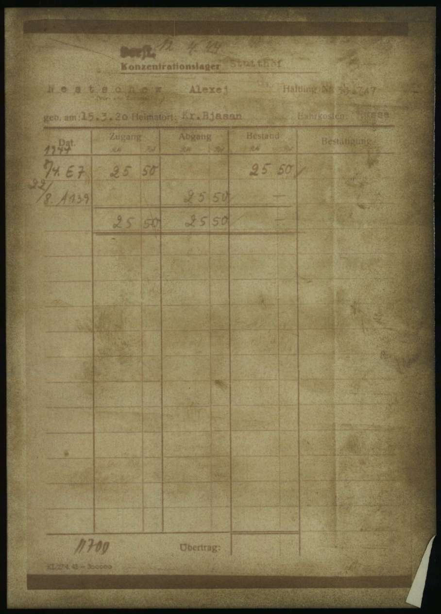 По концлагерю на него есть только карточка с отчëтом, сколько при нëм было денег: концлагерь принял их на хранение.