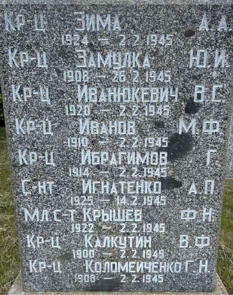 № 136 Фамилия Замулка Имя Юлиан Отчество Иванович Дата рождения/Возраст __.__.1908 Воинское звание краснофлотец Дата смерти 26.02.1945 Страна захоронения ФРГ Регион захоронения Земля Бранденбург Место захоронения н.п. Гросс-Нойендорф, округ Франкфурт/Одер, район Зеелов. https://obd-memorial.ru/html/info.htm?id=250025136