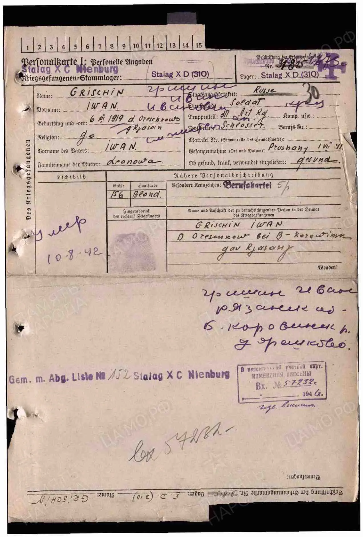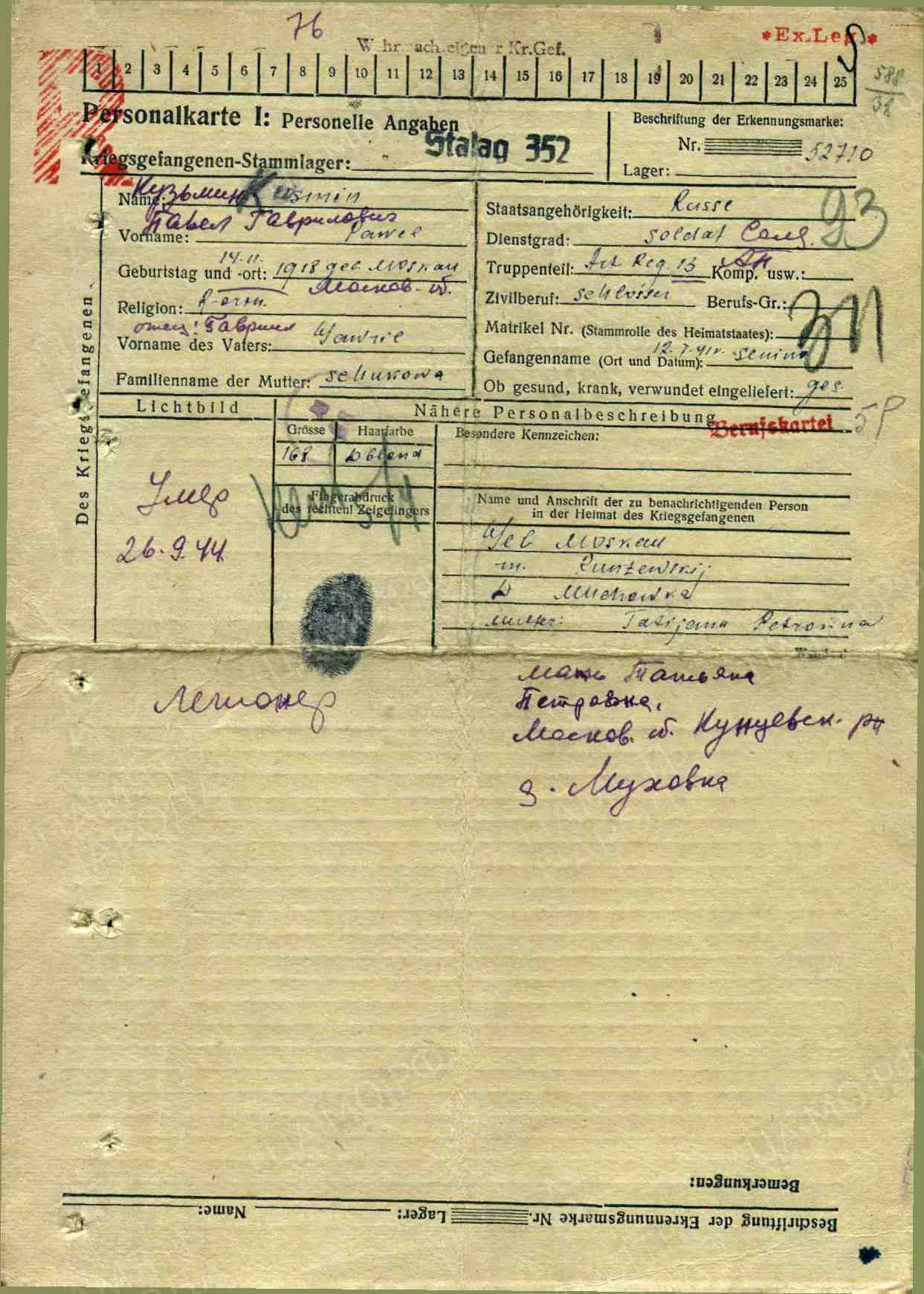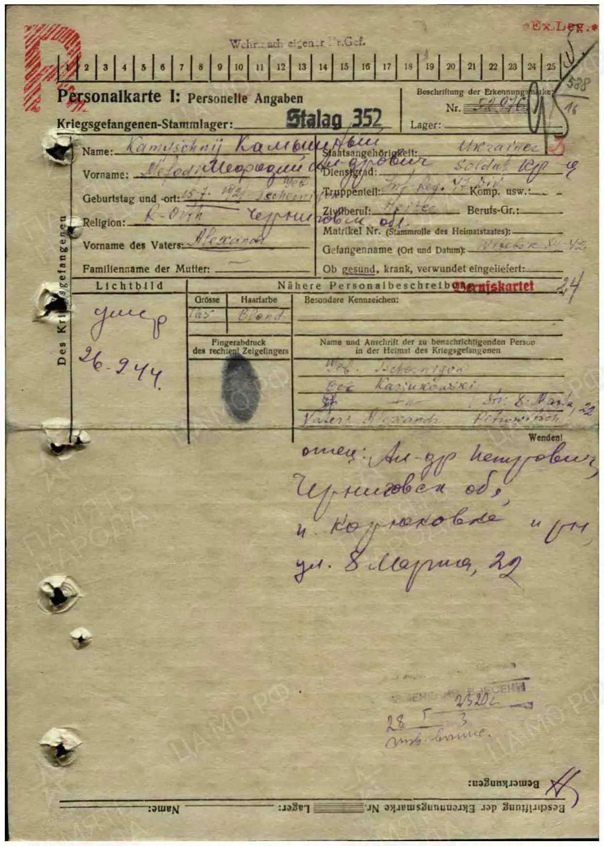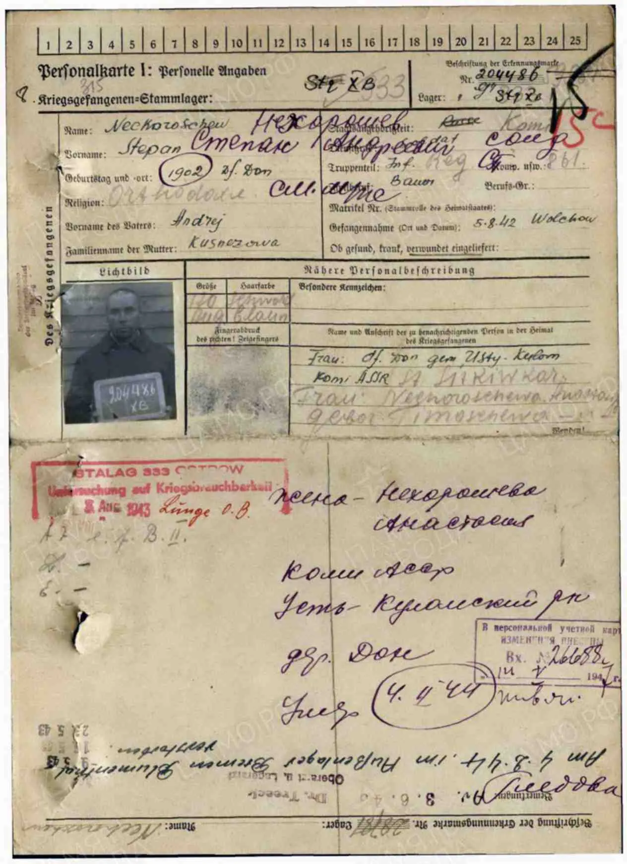 Допсведения с карты военнопленного: