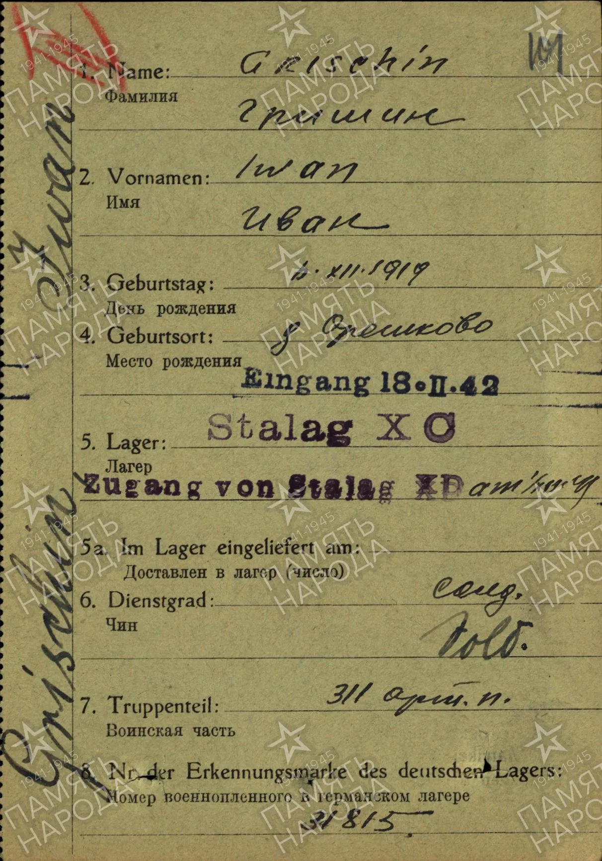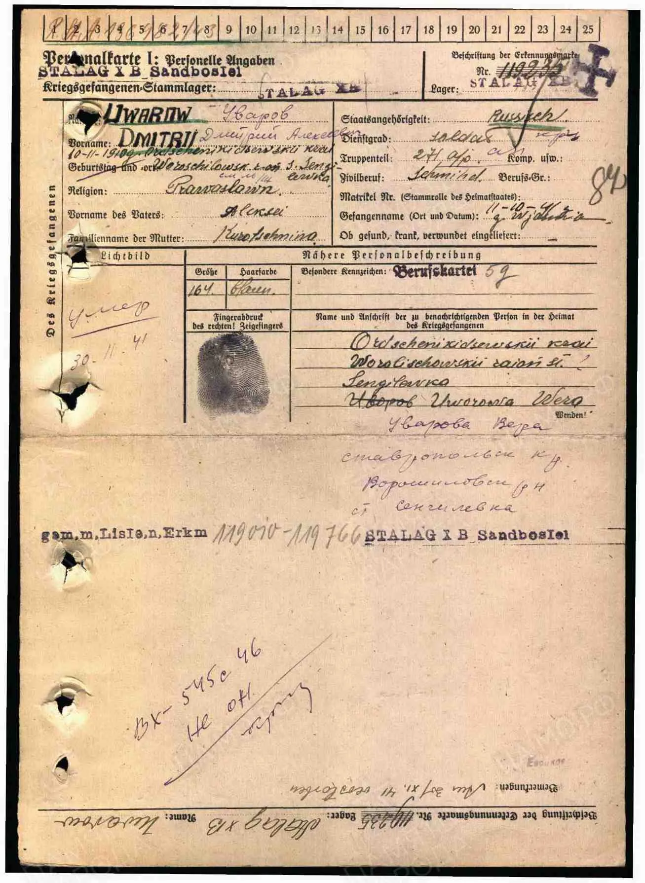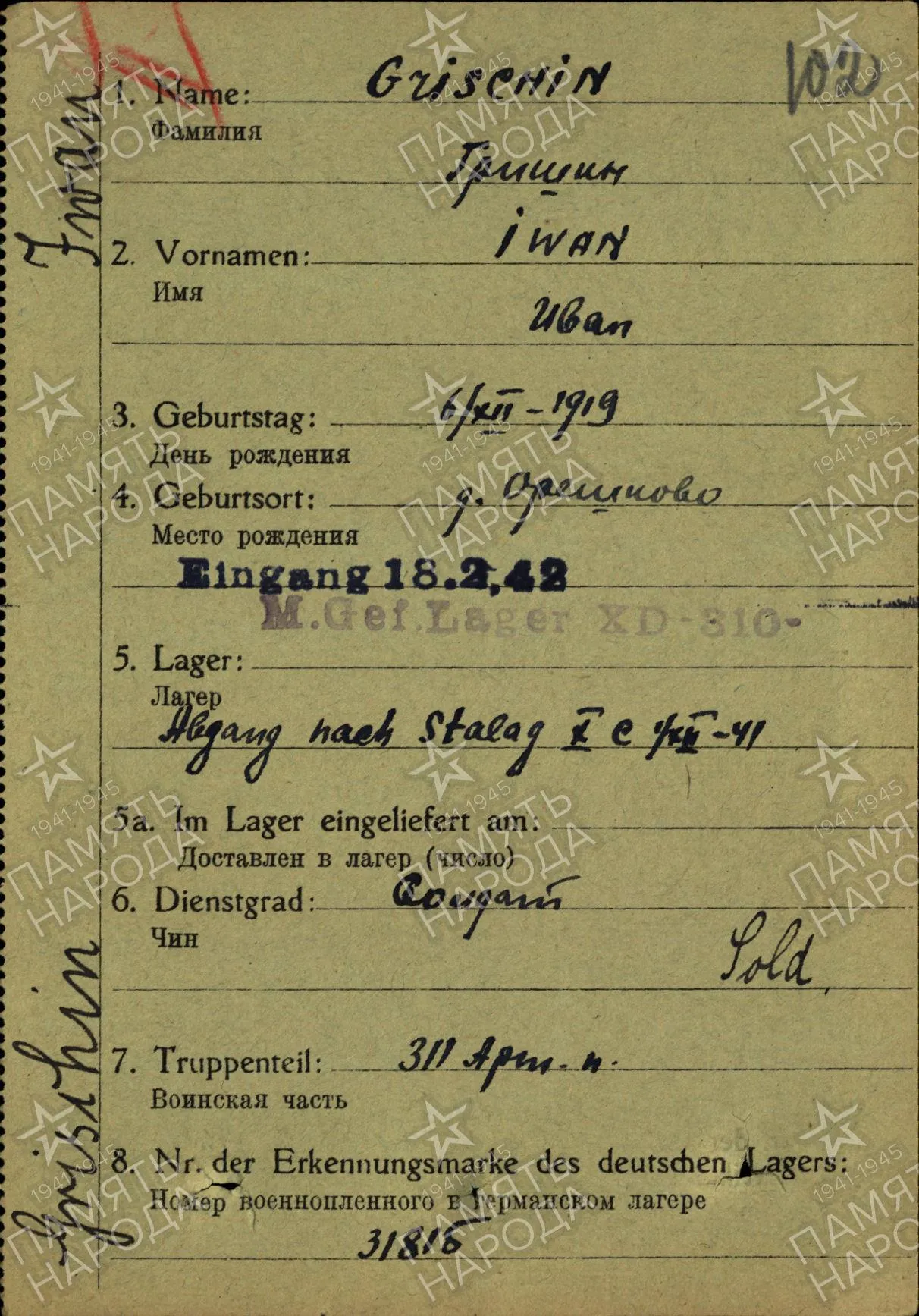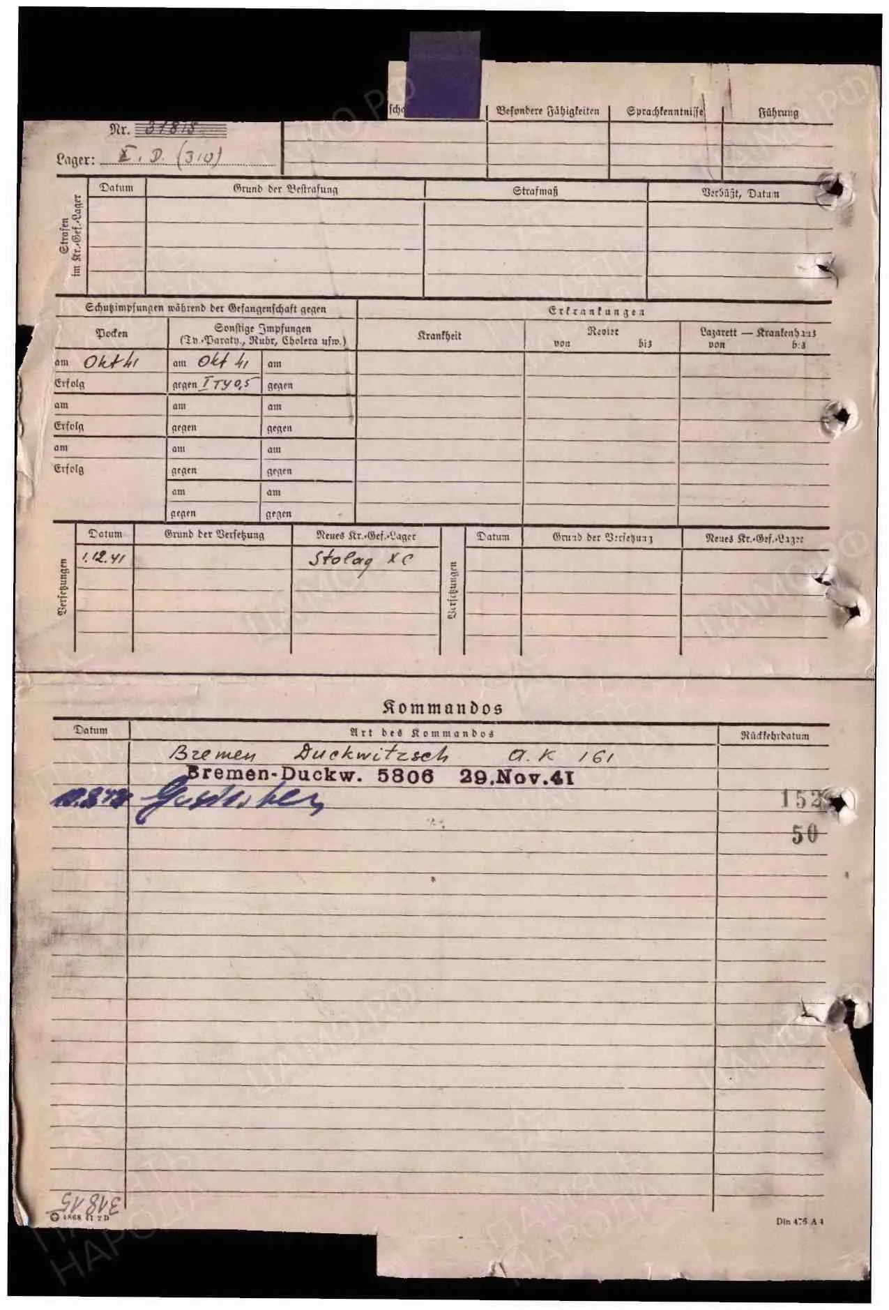 Допсведения с карты военнопленного: