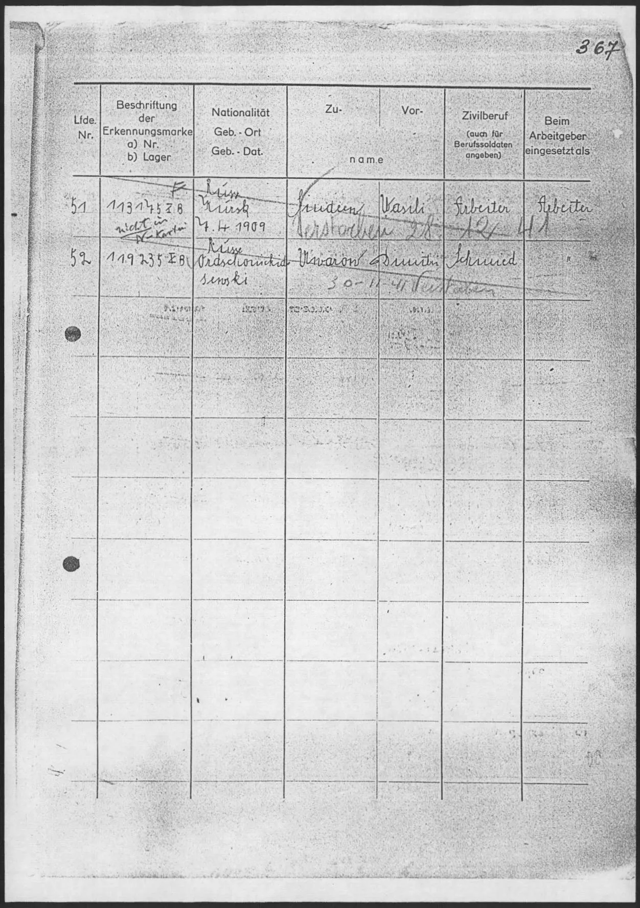 Завадский Владимир Осипович, 15.6.1911 в г. Рига, жил в Москве в Сокольниках с женой Марией, его лагерный номер 118962, рабочая команда Arb.Kdo 5840 Francke-Werke