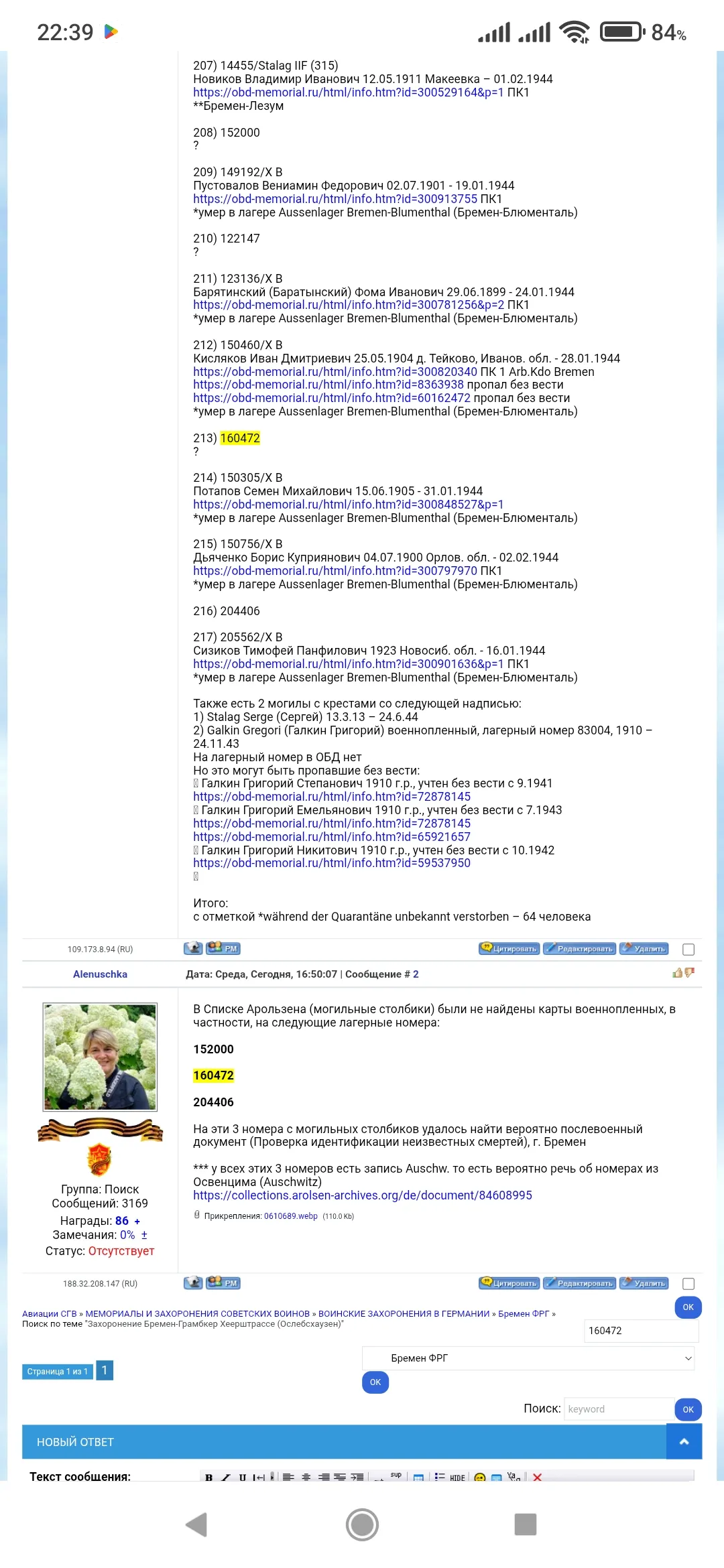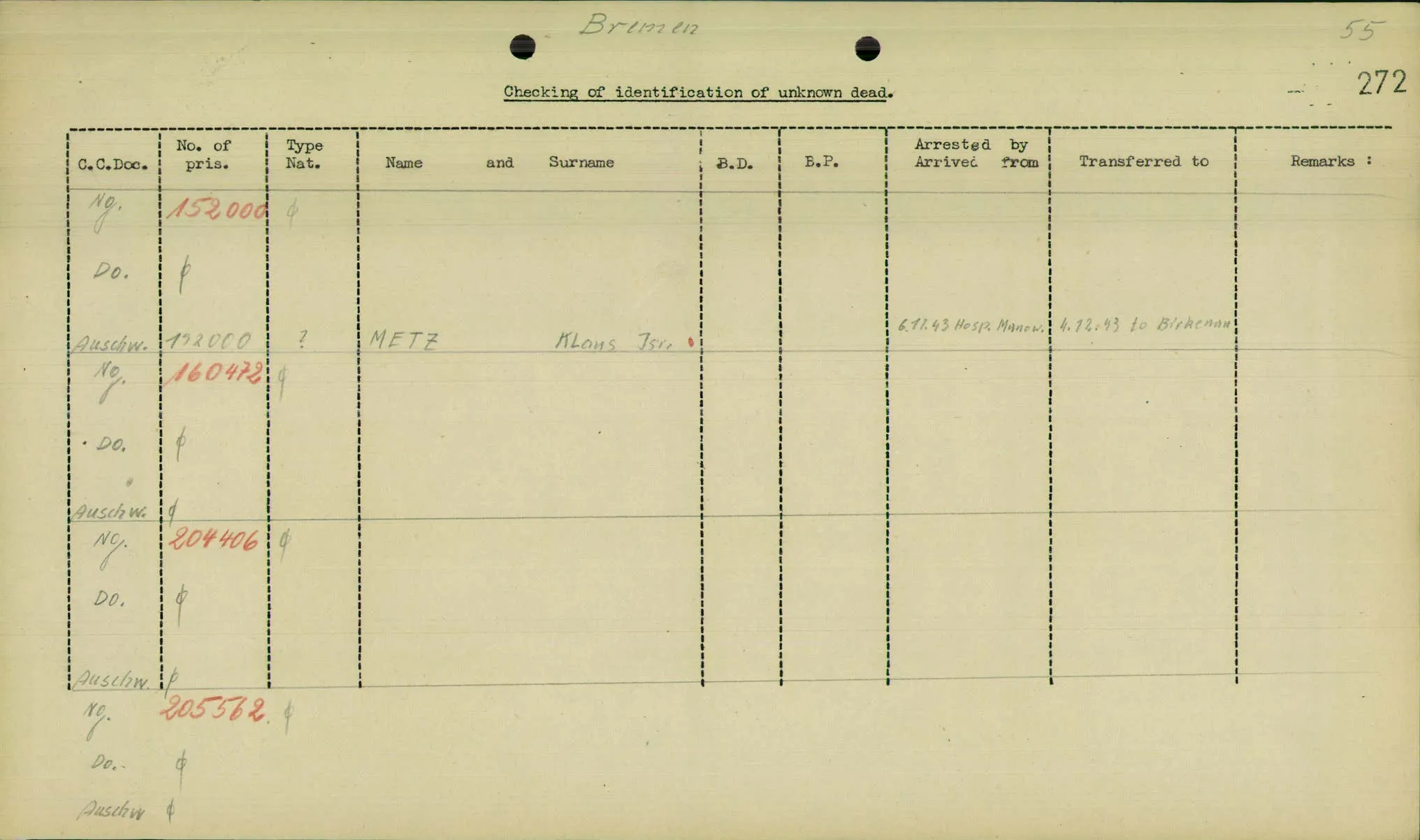 На эти 3 номера с могильных столбиков удалось найти вероятно послевоенный документ (Проверка идентификации неизвестных смертей), г. Бремен