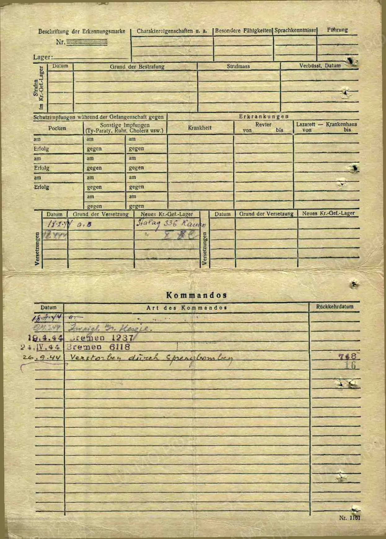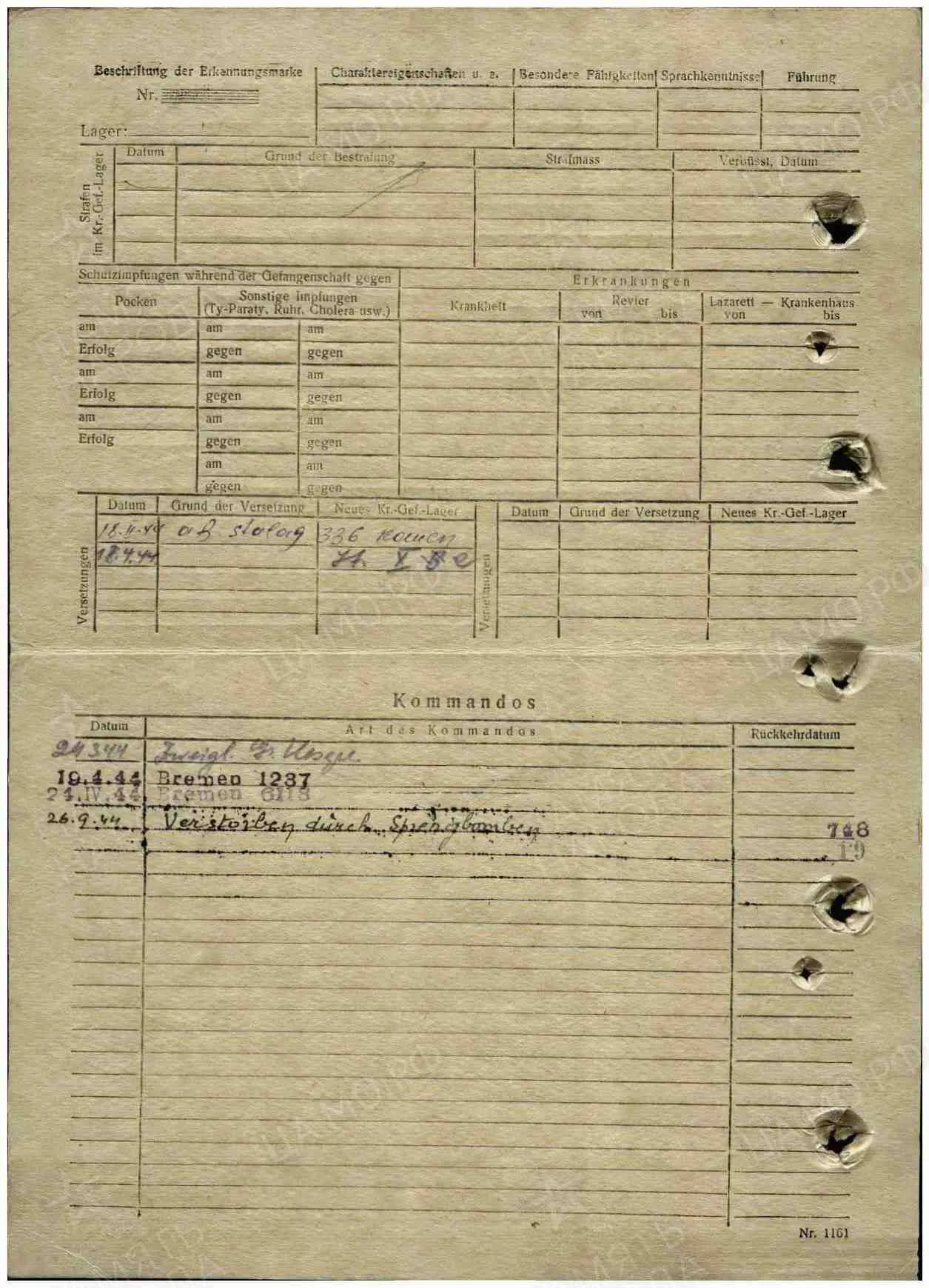 Умер 4.02.1944 в Aussenlager Bremen-Blumental