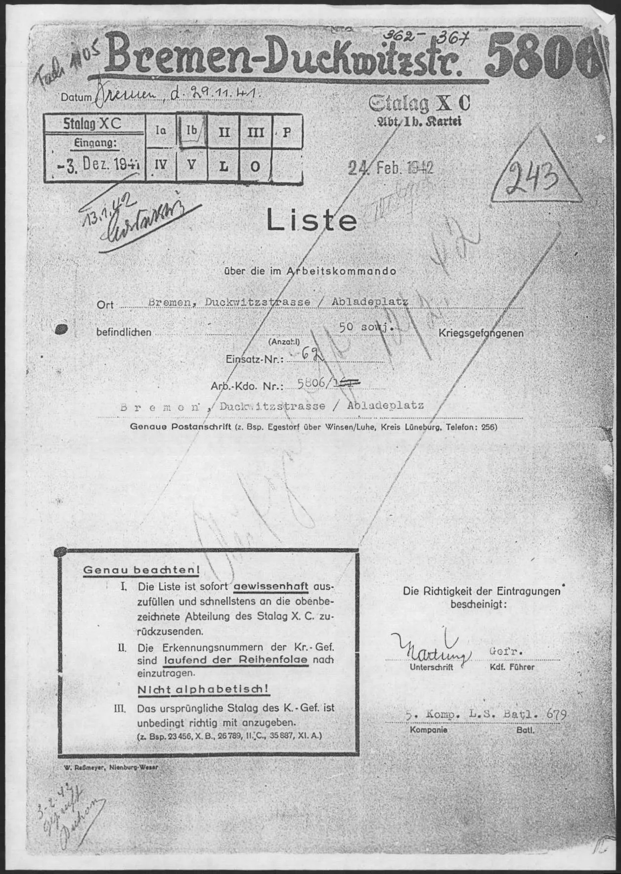 115512/ X B *Abgangsliste 131 Stalag XC Nienburg