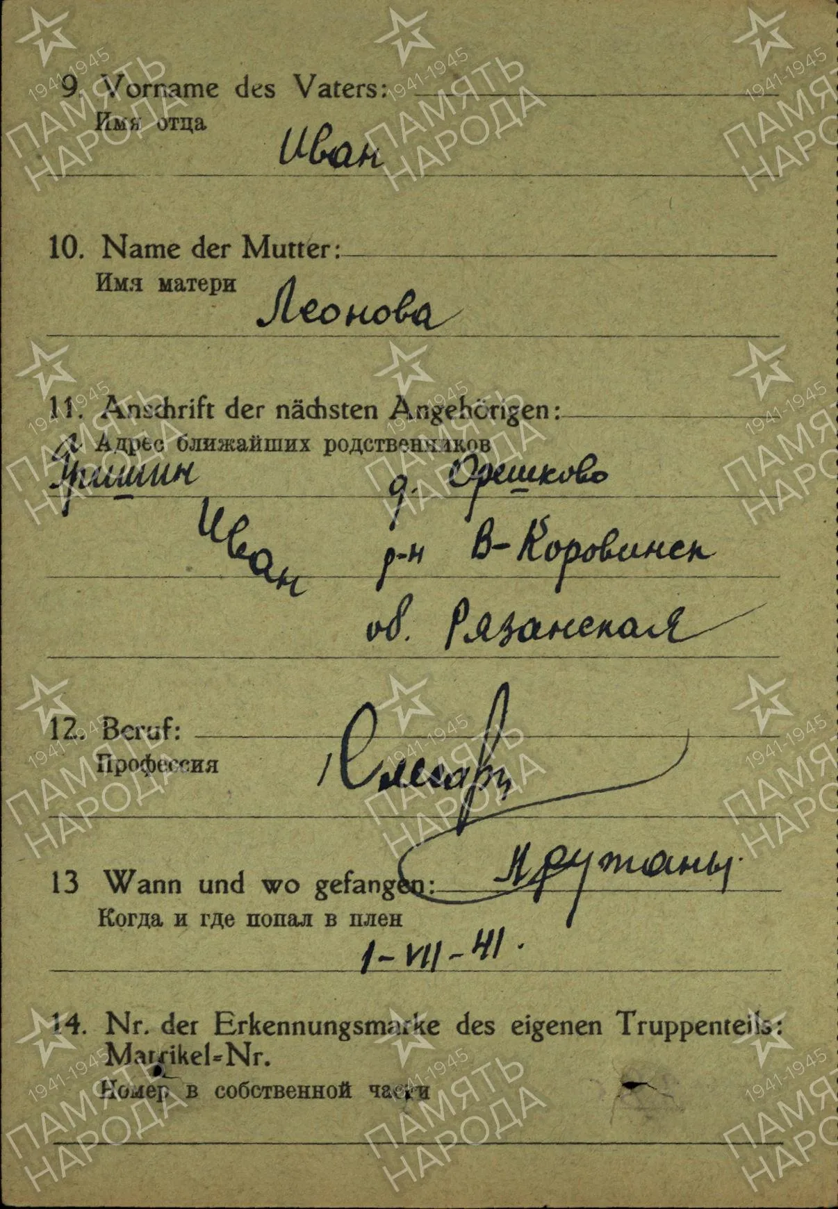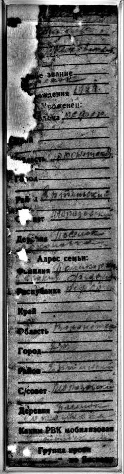 +++ в карте военнопленного лагерный писарь а вслед за ним и наш переводчик с ошибками отразил район и название деревни!!!